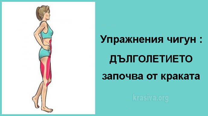 Повечето хора страдат от отоци и болки в краката. Как да им се помогне? Как да се укрепят краката? За това ще ви помогне комплексът „Чигун за дълголетие на краката”. Този комплекс е особено полезен за онези, които работят седнали, а също и за онези, които имат болки в кръста, гърба, бъбреците.